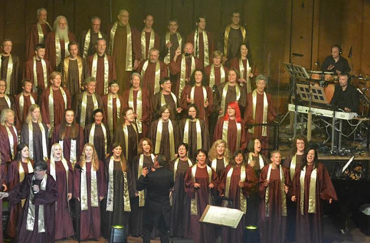 zwischendurch in eine fast streng klassische Richtung ging, bevor sich der Gospelrhythmus wieder Bahn brach. Hörenswert war der Wechsel zwischen den Chor- und den Solopassagen, in denen Monika Geiger brillierte. Hier zeigte sich auch, dass sich die Sängerinnen und Sänger blind aufeinander verlassen können, was natürlich neben der chorinternen Harmonie auch durch die große gesangliche Leistungsfähigkeit zustande kommt.