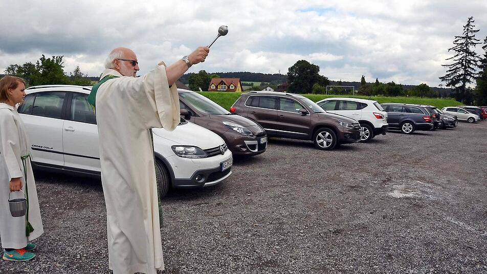 Nachdem in der Einladung schon von einer "Drive-in-Messe" gesprochen wurde, ging Pfarrer Hartmann mit