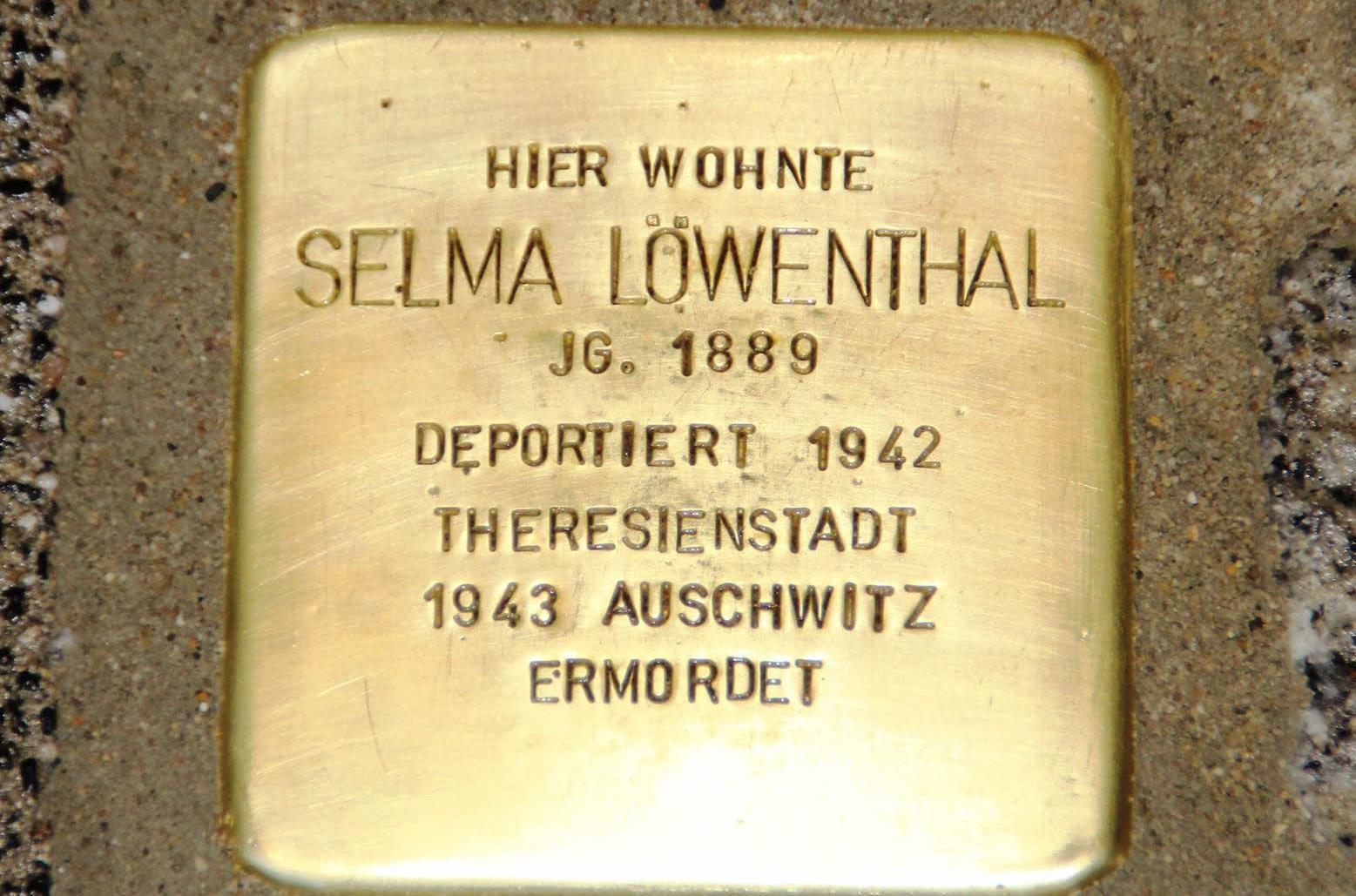Barbara Thiele kennt die Geschichte der Bankiersgattin Selma Löwenthal, hat herausgefunden, dass in der kleinen Privatbank auch Tickets für das Saale- Dampferle verkauft wurden. In der Ludwigstraße, wo sie über der damaligen Bank wohnte (heute Drogeriemarkt Müller) erinnert jetzt ein Stolperstein an ihr Schicksal, das sich in Auschwitz vollendete.