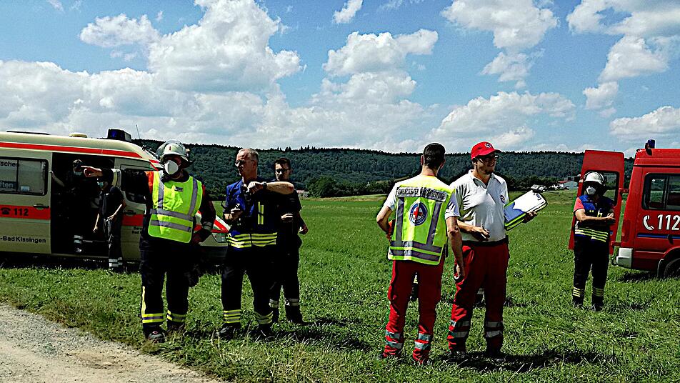 So mancher erschrak am Samstag: Schließlich fuhren einige Fahrzeuge mit Sonder- und Wegerechten durch Kleinbrach bei Bad Kissingen zum Luitpoldsprudel. Die Freiwilligen Feuerwehren der Bad Kissinger Stadtteile Hausen und Kleinbrach rückten gemeinsam mit Rettungsdienst und Wasserwacht zu einer simulierten Notfallsituation aus.