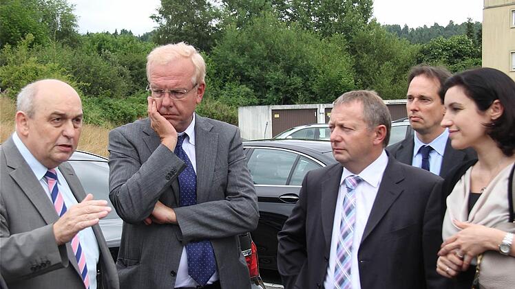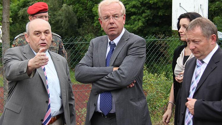 der 150 Schüler aus dem Kasernenbereich in den Ort samt Sanierungsmaßnahmen kosten, erklärte Wildfleckens Bürgermeister Schrenk während der Besichtigungstour. Erhebliche Kosten kämen auch beim Abriss der leerstehenden Hochhäuser "Klein-Manhattan" auf die Gemeinde zu. Eine Menge Geld müsse auch beim weiteren Ausbau des Gewerbegebietes in die Hand genommen werden, sagte Schrenk.