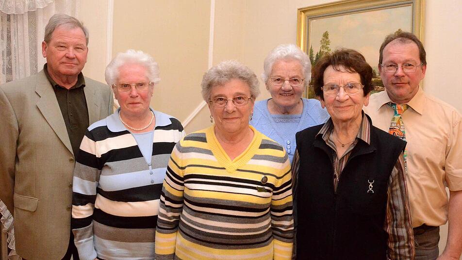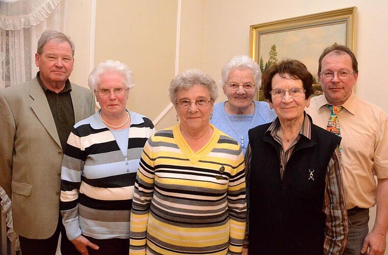 Den "Treuebrief", beziehungsweise "Das Grüne Band der Rhön", zwei der höchsten Auszeichnungen, die der Rhönklub zu vergeben hat, überreichte Hauptvorstandsmitglied Gebhard Pape aus Schweinfurt an Erika Bauner, Katharina De Marco, Liselotte Drummer und Erna Wiederuh.