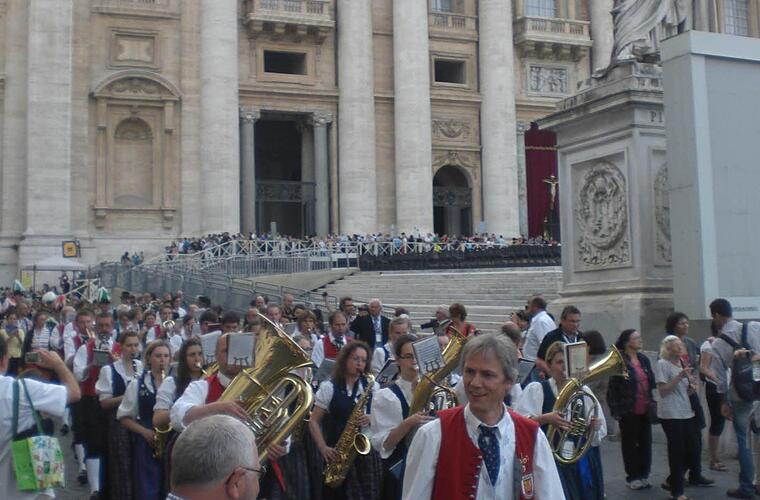 Wer hat schon einmal die Chance, im Petersdom in Rom einen Gottesdienst musikalisch zu gestalten? Die Blaskapelle aus Ebenhausen unter der Leitung von Martin Mühleck hatte sie. Unter ihnen Stefanie Lutz, die begeistert erzählt: "Das war Gänsehautfeeling pur und gar nicht so einfach, sich auf die Noten zu konzentrieren." Und einfach ein überwältigendes Erlebnis.