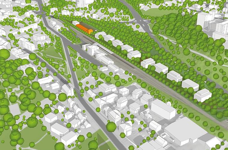 Einige Abgrenzungen sind dennoch notwendig, etwa von den Gleisen. Schirmer plant hier eine mehrere Meter breite "grüne Kante" aus Bäumen und Gehölzen. Nach derzeitigem Stand ist eine Schallschutzwand zum Ostring nicht notwendig. Laut Rotschedl würden architektonische Kniffe an den Gebäuden ausreichen, um für Ruhe in den Wohnungen zu sorgen.