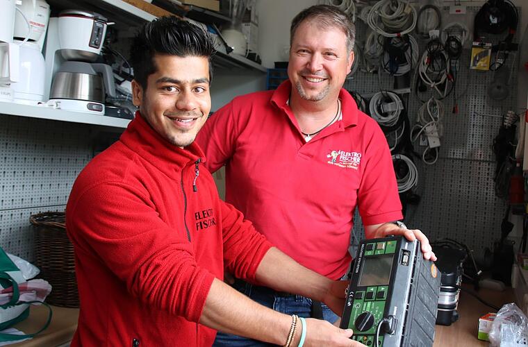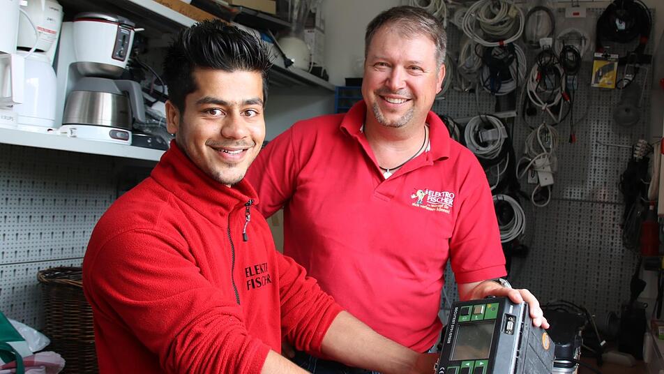 Dabei ist der Beruf des Elektrikers, Fachrichtung Energie- und Gebäudetechnik, durchaus beliebt: "Wir haben keine Probleme, Auszubildende zu bekommen", berichtet Gärtner. Heuer im Herbst beginne auch ein deutscher Bewerber. Die zweite Lehrstelle für Schoaib habe er zusätzlich angeboten. Ob der 18-Jährige die laufende Quali-Prüfung besteht, sei dabei zweitrangig: "Wir suchen schon immer unsere Lehrlinge danach aus, wie sie sich hier verhalten", sagt Gärtner. Und das passe einfach: "Ich lerne jeden Tag von ihm Englisch", nennt Gärtner als Beispiel. Das Lob gibt der 18-Jährige schlagfertig zurück: "Und ich lerne jeden Tag so viel von Herrn Gärtner."