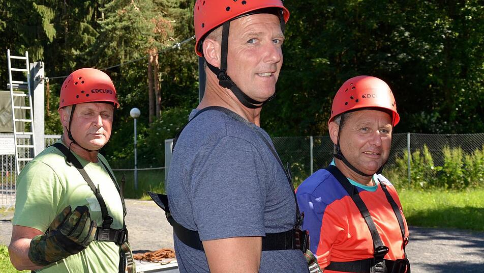 Nicht alle trauen sich so wie Stefan Schmitt den Kletterturm hinauf, über ein Seil in luftiger Höhe die Distanz zum zweiten Turm zurückzulegen und sich aus zwölf Meter Höhe wieder abzuseilen. Schließlich geht es bei dem Besuch in erster Linie darum, einander besser kennenzulernen und die Patenschaft zu stärken. "Die Kollegen aus der Verwaltung erhalten heute einen Einblick, was zu den Aufgaben der Bundeswehr gehört", erklärt Thomas Beck. Außerdem würden sie ein Gespür dafür bekommen, was das für Menschen sind, die einen Beruf beim Militär ergreifen. Es erleichtere die Zusammenarbeit vor allem bei der Planung des nächsten Gelöbnisses. Das soll bereits am 22. September in Bad Bocklet stattfinden.