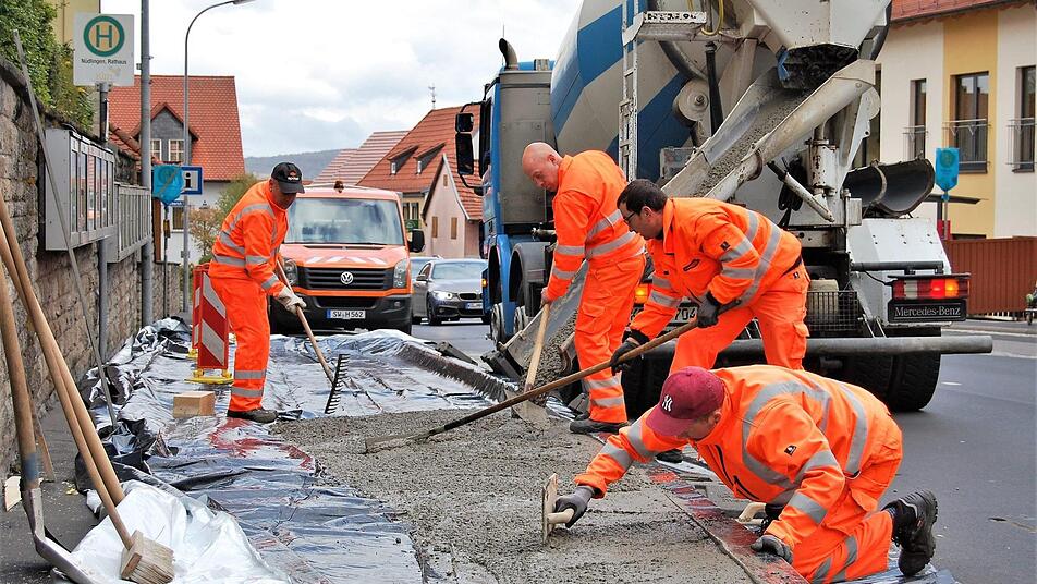 Seit Dienstag läuft der Versuch: Nur um wenige Meter wurden die beiden Bushaltestellen vor dem Nüdlinger Rathaus jeweils in Fahrtrichtung verlegt. Während an der Rathausecke in Richtung Bad Kissingen nur ein paar aufgemalte Linien den neuen Halt auf der Hauptstraße B 287 markieren, wurde in Gegenrichtung am Haltepunkt an der Kirchenseite die bisherige Busbucht mit Beton aufgefüllt, um den Fahrgästen nach Münnerstadt den Einstieg zu erleichtern.