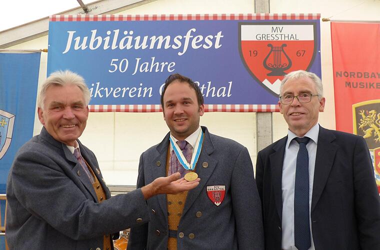 Im Rahmen des 50-jährigen Jubiläums übergab er im Beisein von Schirmherr Bürgermeister Anton Gößmann nach 25 Jahren symbolisch sein Amt an Sebastian Weth, indem er diesem die "Medaille am weißblauen Band" des Nordbayerischen Musikbundes umhängte. Die wurde dem Verein 1992 anlässlich des 25-jährigen Jubiläums als Anerkennung für die Verdienste zur Förderung der Blasmusik und damit auch der fränkischen Kultur überreicht.