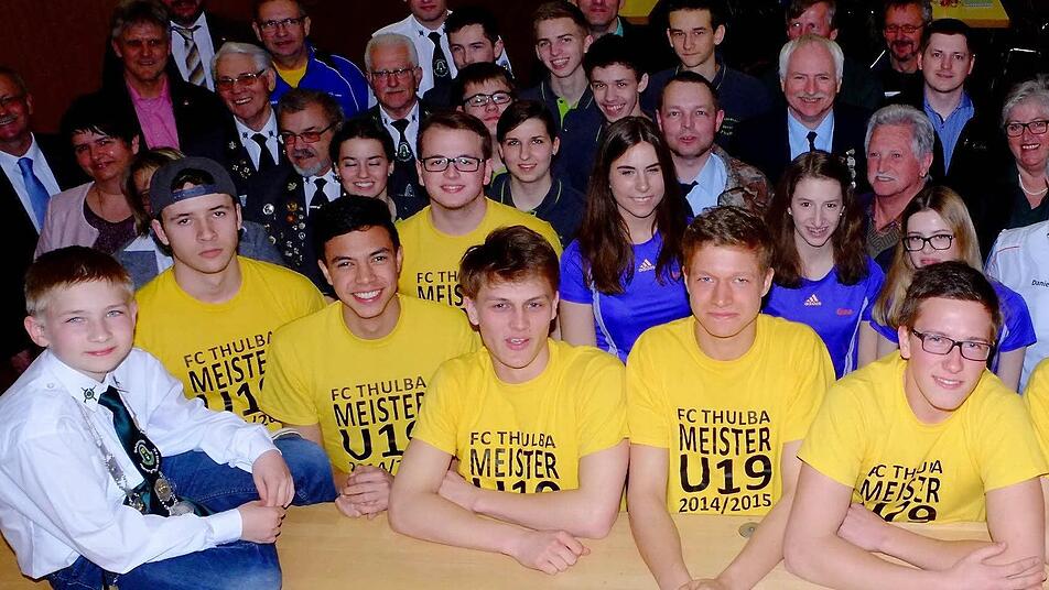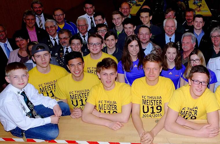 Die U 19-Spielgemeinschaft des FC Thulba: Meister und Aufsteiger in die Kreisliga Rhön schaffte (hier spielen auch Fußballer aus Oberthulba und Frankenbrunn mit): Thorsten Büttner, Fabian Diemer, Florian Döll, Lukas Greubel, Dominik Harcunowicz-Schießer, Frederic Henz, Michael Herrlein, Alexander Kwasny, Niklas Lerpscher, Felix Lutz, Felix Müller, Brandon Roller, Marius Schubert, Jonas Straub, Julian Straub, Janek Vogler, Cedric Werner und Matthias Wolf. Trainer Robert Knüttel, Betreuer Julian Brönner und Tobias Warter.
