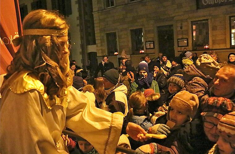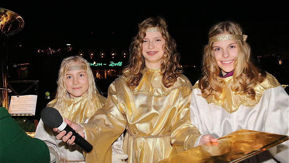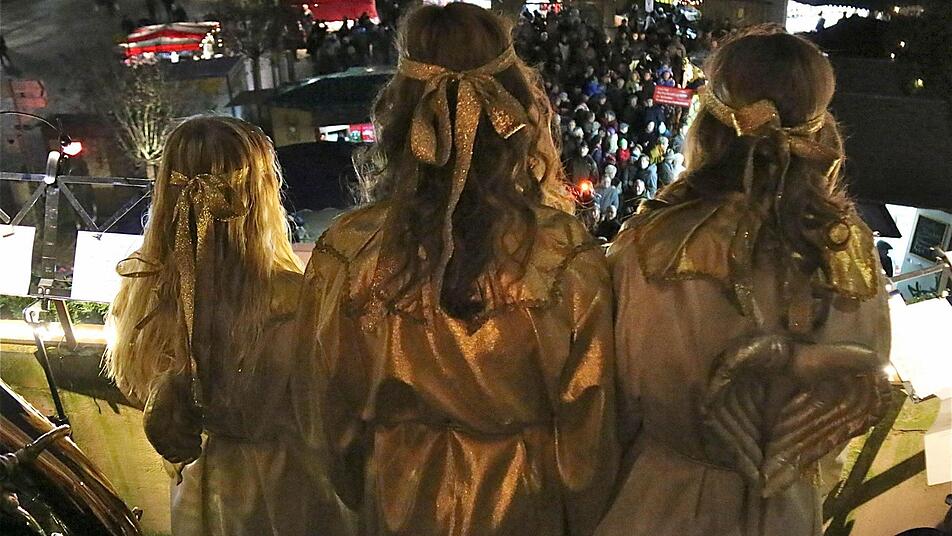 Der Marktplatz füllte sich am Samstagabend, als Christina Densch als Christkind zusammen mit den beiden Engeln Hannah Lamprecht und Jennifer Liebling die weihnachtliche Botschaft vom Rathausbalkon verkündete.