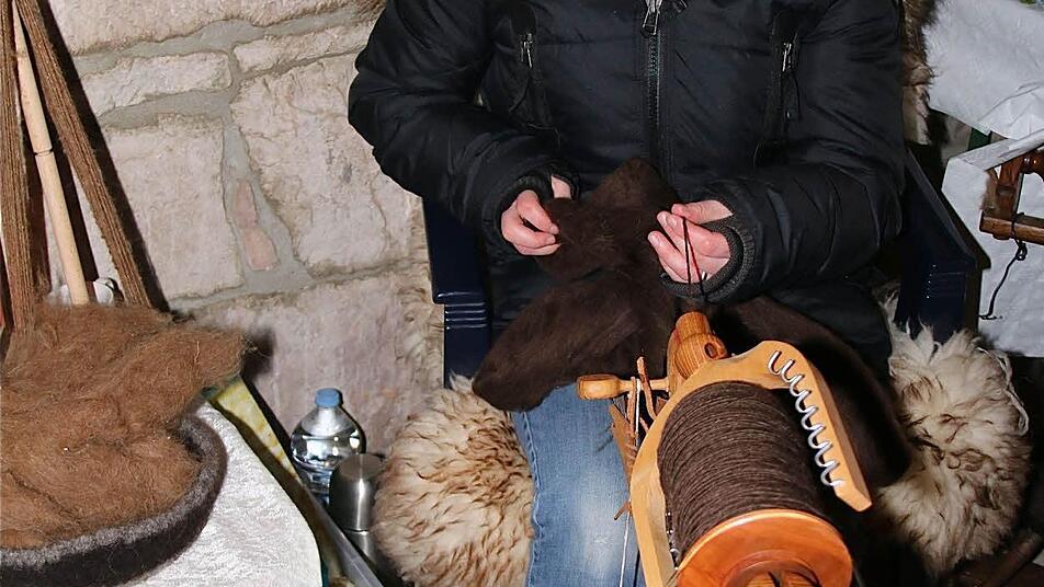 Wie man in früheren Zeiten am Spinnrad saß, zeigte Linde Voshage mit ihrer handgesponnenen Wolle in Fellas Brennereihof. Hoch her ging es in der Holzwerkstatt, wo die Band "Cloud-Base" den Besuchern der Holzausstellungen gründlich einheizte. Der Bandname ist Programm, sind doch diese Musiker alle regelmäßig in der Gleitschirmfliegergruppe am Heroldsberg anzutreffen.