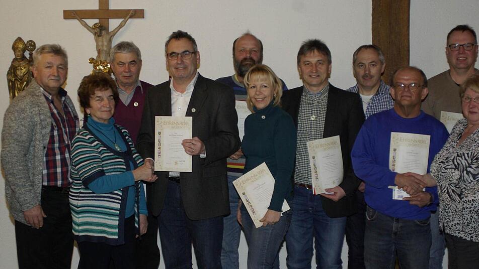 Die goldene Nadel des Landesverbands, die Urkunde und ein Präsent des Vereins erhielten Albert Bayer, Reiner Heid, Karl Wahler, Willibald Kippes, Hans-Jürgen Pfülb, Mathias Stöth, Berthold Volpert und Isolde Winkler. Dietmar Kippes, Horst Stöth, Elmar Pfeuffer und Thomas Hugo wird die Ehrung nachgereicht.