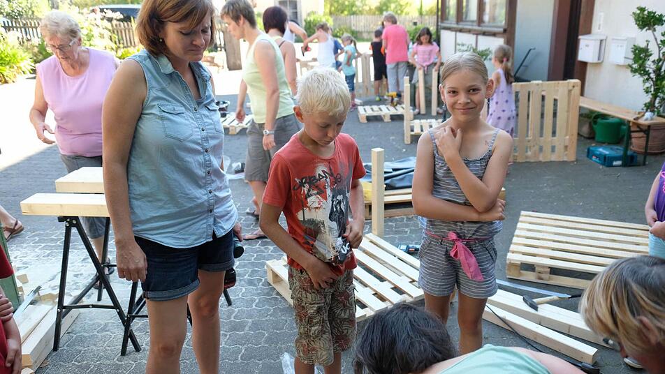 Messen, Sägen und Schrauben war am Samstag angesagt auf dem Hof von Ingrid und Lothar Bold. Im Rahmen des Ferienprogramms hatte der Obst- und Gartenbau-Verein (OGV) aus dem benachbarten Schwärzelbach zum Bau von Hochbeeten eingeladen.
