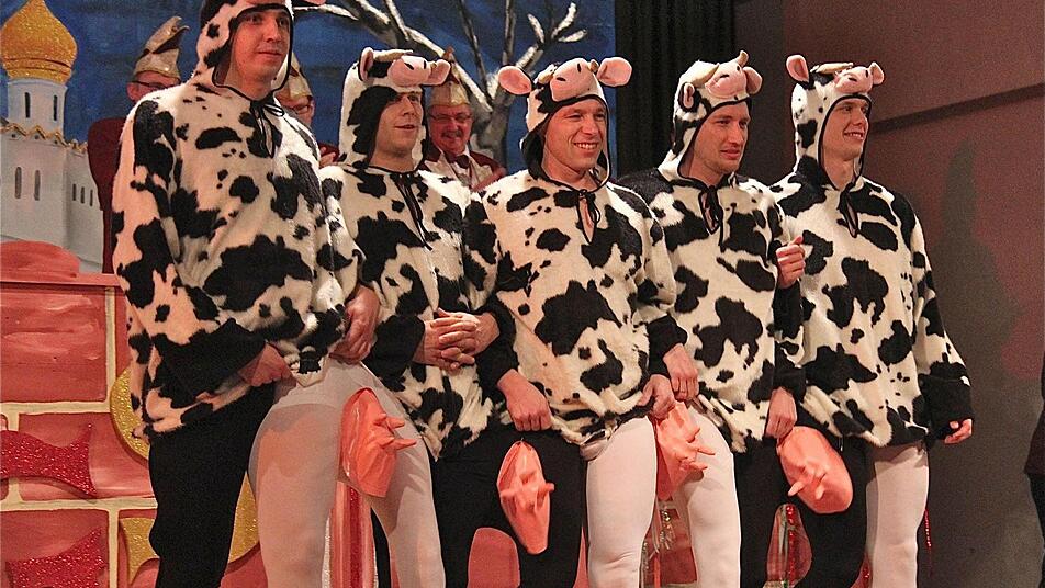 In ihrer Rolle als Bauern der älteren Generation kamen sie mit der landwirtschaftlichen Computerwelt überhaupt nicht klar: "Nein, die Diskette ist kein Untersetzer für das Bierglas und die Festplatte ist nicht zum Essen", lautete die mühsam errungene Erkenntnis. Die Büttensketche weiterer Gruppen hatten die Milchkühe, das Duschen und das Bauhandwerk zum Thema. Aber auch Filmthemen wie Sister Act oder der Schuh des Manitu waren angesagt. Sorgen um fehlenden Nachwuchs braucht sich die FGS nicht zu machen. Schon die Kids tanzen als Glühwürmchen voller Begeisterung mit. Die große Garde präsentierte sich heuer erstmals in neuen Gardekostümen.