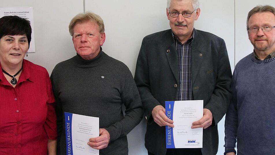 "Ich bin in jüngeren Lebensjahren mit 33 eingetreten, weil ich mit dem VdK persönliche Probleme lösen konnte", erklärt der Waizenbacher Edgar Förg, der seit 25 Jahren Mitglied ist. "Es ist eine gute Geschichte, dass es den VdK gibt, und ich fühle mich nicht allein", sagt er. Für zehn Jahre Mitgliedschaft wurde Wolfgang Scholz geehrt.