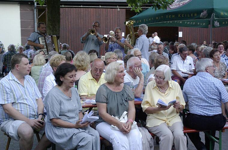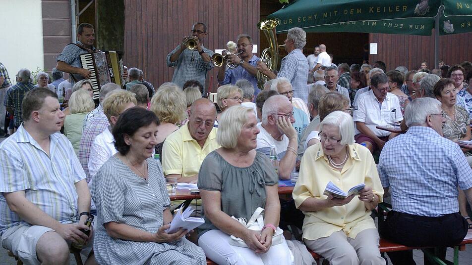 Die bewirtende Feuerwehr Elfershausen hatte gut zu tun und das Open-Air-Wirtshaussingen mit Teufelsgeige war nach dem Geschmack der meisten Besucher. Es gibt noch einige Möglichkeiten den Bergmusikanten zu lauschen: bei Festen, Kirchweihen oder am 15. August auf der Gemündener Hütte.