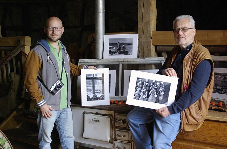 Armin Weidenthaler und Sebastian Mützel - mal ein cineastisches Team, mal Foto-Solisten - präsentierten 32 Bilder in Schwarz-Weiß-Fotografie, Licht- und Schattenspiele mit dem Schwerpunkt Schreinersch-Haus und die Region wie die Trimburg, Obereschenbach oder den Sodenberg, die auch käuflich zu erwerben waren.