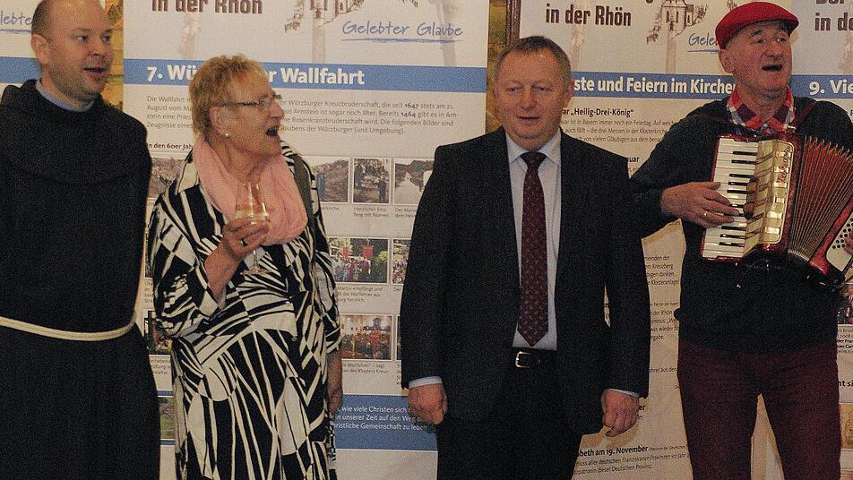 Das Kreuzberg-Lied angestimmt Heimat-Liedermacher Konrad Albert setzte das richtige Zeichen, als er nach Hause lief, seine "Quetsche" ergriff und im Rathausremter spontan das "Kreuzberg-Lied" anstimmte, das alle mitsangen. Regina Rinke war 22 Jahre lang, bis 2011, Vorsitzende des Rhönklubs, mit ca. 25 000 Mitgliedern einer der größten, deutschen Wandervereine. Seit dem vorigen Jahr ist Regina Rinke Ehrenpräsidentin, engagiert sich derzeit für Kinderprojekte in Ruanda und initiierte den Bau einer Schule, die vor kurzem eingeweiht wurde.