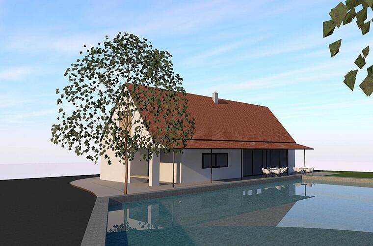 Wünschenswert wäre nach Meinung des Architekten eine Veranda zum rückwärtigen Teil des Gebäudes in Richtung Löschweiher des verglasten Versammlungssaals. Beheizt wird das Gemeinschaftshaus mit einem Pellets-Ofen und Frostwächtern.
