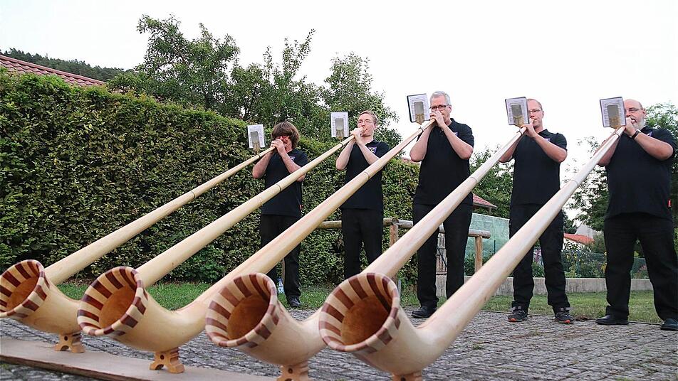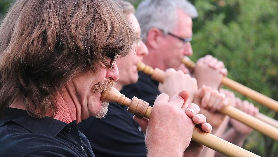 Die Alphornbläser Egon Schmitt, Florian Schaub, Udo Kiene, René Beckmann und Hubertus Nicklaus faszinierten mit warmen Holzklängen zur Abendstimmung ihre Zuhörer.