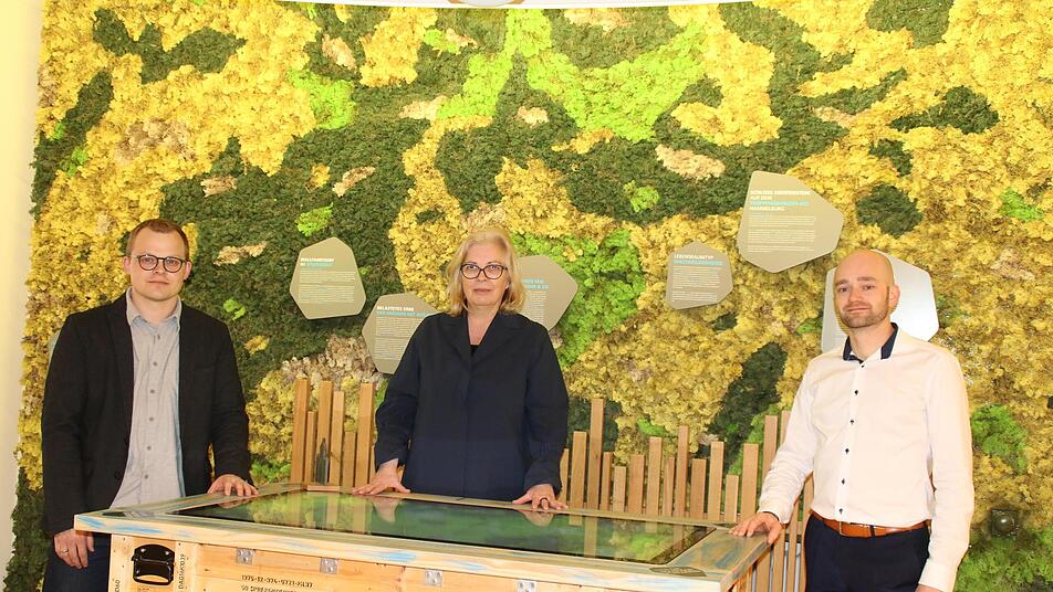 Die Ausstellung ist in Themenbereiche gegliedert. Vor einer Moos-Wand mit Gebietsstruktur befindet sich mit dem Medientisch das Herzstück der Ausstellung. Die Besucher haben hier die Möglichkeit, über Truppenübungsplatz oder Schießanlage zu zoomen. Oder auch seltene Pflanzen und Tiere kennenzulernen sowie das Schloss Greifenstein, dessen Geschichte aktuell in einer Sonderausstellung im Museum Herrenmühle näher beleuchtet wird. Ein anderes technisches Highlight ist eine Kamera, vor der man sich mit einem gewählten Hintergrund ablichten lassen kann, das Ergebnis erscheint nur Sekunden später auf einem großen Flachbildschirm. Ein weiterer Bereich zeigt einen Spint, wie er ab 1959 in einer Sechs-, Acht- oder Zwölfmannstube stand. Als Kontrast daneben die neue moderne Stubenausstattung, mit einem Bett, das mehr Komfort verspricht. Auch den Auslandseinsätzen, wie KFOR oder Mali ist ein Raum gewidmet. Transportkisten, aufgebaute Schutzwände oder auch eine Splitterschutzweste weisen auf Krisengebiete hin. Mit Weste und anderer Schutzausrüstung trägt der Soldat dabei bis zu 40 Kilogramm zu seinem Körpergewicht mit sich. Den Machern der Ausstellung war es wichtig, auch posttraumatische Belastungsstörungen zu benennen und die Leute nicht damit alleine zu lassen. Mit einer UV-Lampe kann man einen dunklen Raum betreten, an der Wand stehen Erfahrungsberichte von Betroffenen. Erwähnung findet auch die Kaserne in Wildflecken. Dort hätte der Truppenübungsplatz mit Umsiedlungen und auseinandergerissenen Dorfgemeinschaften starke Einschnitte bedeutet. Auch seien dort schon einmal 9000 Mann und 1500 Pferde stationiert gewesen. Geschichtliches wird hier deutlich vom 2. Weltkrieg über den Kalten Krieg bis hin zum Abzug der Amerikaner. Aufgebaut ist eine kleine Kinoreihe mit original amerikanischen Sitzen. "Vielleicht hat in einem der Sitze sogar Elvis Presley mal gesessen - er war unter anderem dort einmal stationiert", so Joa.