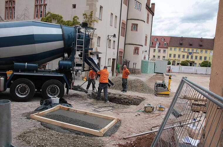 Die Abbrucharbeiten am Bürgerhaus in Hammelburg sind abgeschlossen. Am Freitag wurden am Buttenmarkt die Fundamente für den großen Kran betoniert. Am Dienstag und Mittwoch, 25. und 26. Mai, werden Mitarbeiter der Firma Burger den Kran für die Rohbauarbeiten auf dem Buttenmarkt aufstellen. Zu diesem Zweck wird der Buttenmarkt komplett gesperrt. Auch die beiden Stellplätze in der Kirchgasse im Bereich Tourist-Info können dann zwei Tage lang wegen der Krananlieferung nicht genutzt werden, schreibt die Stadtverwaltung in einer Mitteilung. Die Toiletten am Rathaus bleiben aus Sicherheitsgründen bis auf weiteres geschlossen, die im Durchgang zum Hof des Kellereischlosses stehen auch zukünftig der Öffentlichkeit zur Verfügung.