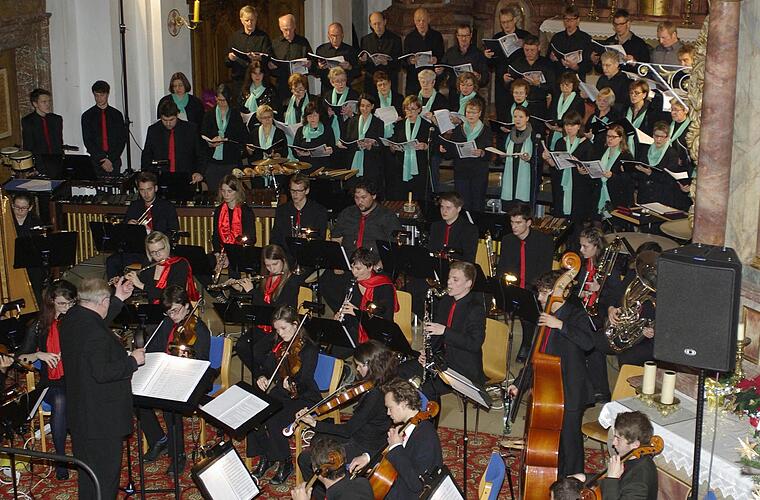 Die Mischung macht's Ein globales Schlaglied warf die meditative Weihnachtsbotschaft aus Bibelzitaten und zeitgemäßen Reflexionen - von Kuno Holzheimer, dem Künstlerischen Leiter der Hammelburger Musikakademie rezitiert - durch die Übersetzung in sechs verschiedene Sprachen (Latein, Französisch, Spanisch, Englisch, Russisch und Tschechisch) aus dem Chor und dem Orchester auf die Veranstaltung.