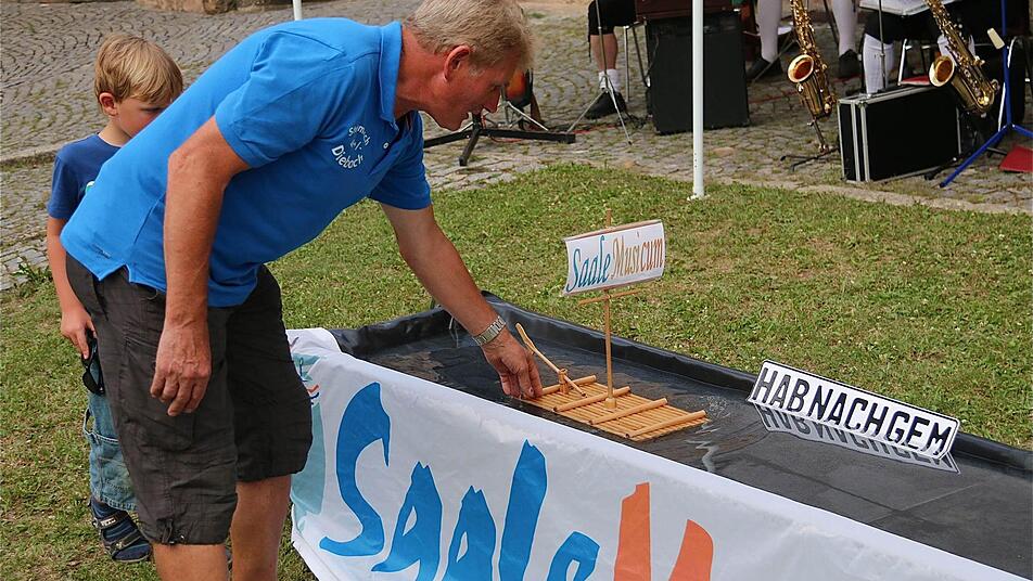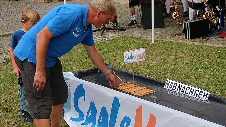 Pfiffige Idee Etwas Pfiffiges hat sich Fritz Gensler, der Erbauer des vier Meter langen und einen halben Meter breiten symbolischen Saalestücks, einfallen lassen, in dem das Floß zu Wasser gelassen wurde. Er fertigte ein Schild mit der Aufschrift "HAB NACH GEM" an. Damit ging der Diebacher Vereinsringvorsitzende auf die wieder eingeführten alten Autokennzeichen ein. "Es war eine Blitzidee", verrät Gensler. Manch lustiger Gast im Gadenhof interpretierte das Schild jedoch als fränkischen Spruch mit dem Inhalt: "Hab´ nachgegeben".