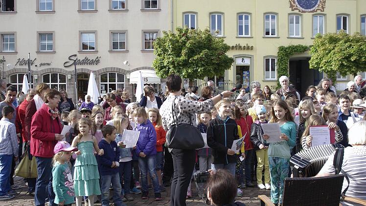 Musik und Lieder Die Obereschenbacher Hopfenbläser spielten anschließend auf. Die Kinder der Grundschule am Mönchsturm intonierten unter Leitung von Rektorin Simone Albert mehrere Verse auf Handwerksberufe. Auch die Jüngsten der Volkstanzgruppe Völkers-leier zeigten einige Tänze in hübschen Trachten. Für das leibliche Wohl sorgten die Metzgerei Köhler und die Familie Lange vom Weingut Schloss Saaleck.