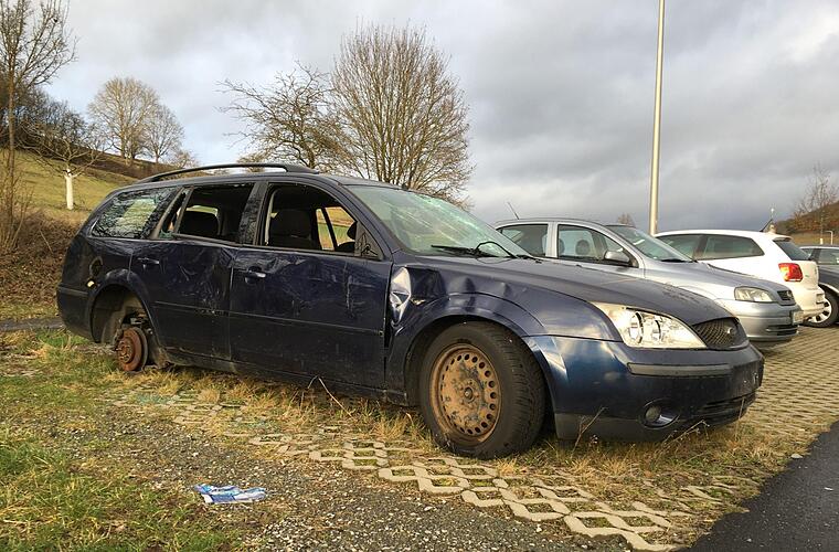 Das verlassene Fahrzeug stand ab dem Sommer 2019 in der hintersten Ecke des Pendler-Parkplatzes bei Machtilshausen. Immer wieder sorgte das Wrack für Nachfragen, Ärger und Kommentare in sozialen Medien: Einwohner aus Machtilshausen schalteten die Polizei ein, weil Jugendliche das Fahrzeug lautstark immer mehr beschädigten: Räder wurden abmontiert, sämtliche Scheiben eingeschlagen, im Innenraum sammelte sich jede Menge Müll an.