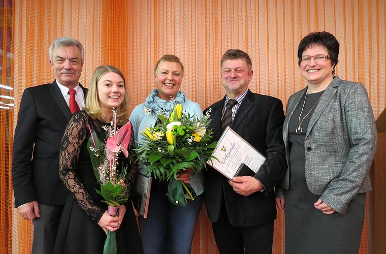 Schließlich sind verdiente Mitbürgerinnen und Mitbürger ausgezeichnet worden. Um niemanden außen vor zu lassen, weil es aus Datenschutzgründen zukünftig keine Informationen von Schulen oder der IHK gibt, bat die Bürgermeisterin jeden, verdiente Persönlichkeiten für zukünftige Ehrungen vorzuschlagen. So erhielten heuer das Ehepaar Edeltraud und Winfried Brand aus Wirmsthal sowie Walter Graf aus Euerdorf für ihre Verdienste rund um die Marktgemeinde Bürgermedaillen. Weiterhin wurden für herausragende Leistungen Anika Ferdin, Rolf Lauer, Pascal Rott, Markus Fleckenstein und Christian Leber geehrt.