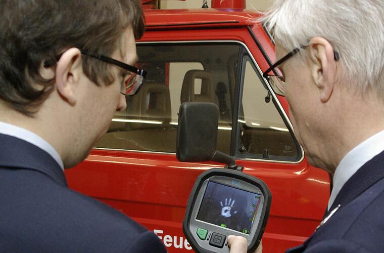 Suche nach Vermissten Die Kamera dient auch der Sicherheit der Feuerwehrleute. "Sie erkennt nicht nur physische Wärme sondern auch Körperwärme im Nachgang, zum Beispiel einen Handabdruck oder ob eine Person auf einem Autositz saß oder im Bett lag, was eine gezielte Suche nach Vermissten ermöglicht. Wir können damit einen 1,80 Meter großen Mann auf rund 100 Meter erkennen", weiß der Kommandant.