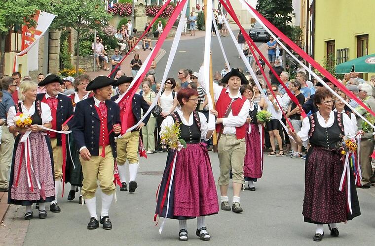 Ein historischer Festzug mit insgesamt 50 Gruppen, darunter vier Musikkapellen, krönte die Feierlichkeiten zum 1110. Jubiläum. Zu diesem Ereignis, bei dem die Vereine vergangene Zeiten passieren ließen, war nicht nur das Dorf auf den Beinen, sondern auch Tausende von Besuchern aus der Region, die sich dieses Highlight nicht entgehen lassen wollten.