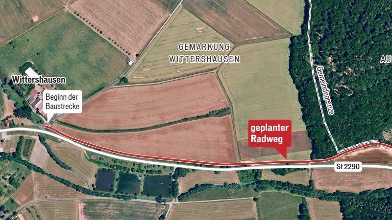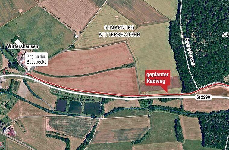 Für das Projekt will die Behörde das Förderprogramm "Stadt und Land" zur Schließung von Radweg-Netzlücken nutzen, das den Ausbau von Rad-, Fußwegen auf bestehenden Wirtschaftswegen vorsieht. Der Bund und der Freistaat übernehmen die 100-prozentige Finanzierung. Die Gemeinde sorgt für den betrieblichen und baulichen Unterhalt für das, die Staatsstraße 2290 begleitende, 1,4 Kilometer lange, asphaltierte Ausbaustück nach Wittershausen. Auch kümmert sich die Kommune um den Grunderwerb. Wie Arnold informierte, sei dies eine "sinnvolle Ergänzung", für die vorbereitende Arbeiten notwendig waren, wie Voruntersuchungen und die Abstimmung der Förderfähigkeit mit der Regierung von Unterfranken. Die Baumaßnahme für den drei Meter breiten Weg, der über zwei 50 Zentimeter breite Bankette verfügt, übernimmt das Staatliche Bauamt Schweinfurt.
