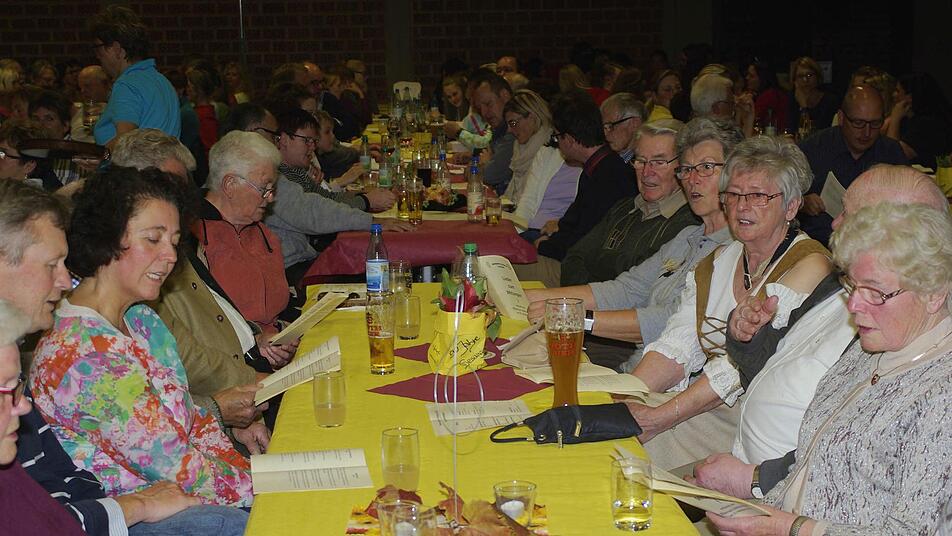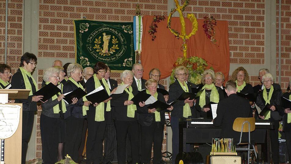 Der Geburtstagsverein präsentierte sich mit zwei weiteren Ensembles, dem Gesangverein und dem Fuschter Chor. Nach jeweils drei Chorauftritten flochten die Fuchsstädter zwei Blöcke ein, in denen sich die Zuhörer in der gut gefüllten Mehrzweckhalle beteiligen konnten - das Wirtshaus-Singen. Titel wie "In Junkers Kneipe", "Spiel noch einmal für mich, Habanero" oder Freddy Quinns "Seemann, lass das träumen" animierten zum Mitmachen.