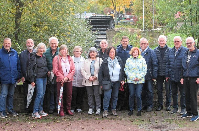Vom Niederbrunnen ist es ein Katzensprung zum Heimatmuseum Herrenmühle. Hier wartete Elfriede Böck mit historischen und aktuellen Informationen über die frühere Getreidemühle auf. Am Nachmittag ergab sich Zeit zur freien Verfügung und Spaziergänge zu ehemaligen Wohnsitzen, einen Besuch des Friedhofs oder eine Stippvisite bei Verwandten, Freunden und Bekannten. Der eine oder andere hat auch das alte Schulhaus aufgesucht, wo Margarete Sell und Fräulein Weber die Mädchen und Buben als erste Lehrerinnen unter ihre Fittiche nahmen. Die 75-Jährigen haben sie noch kennengelernt, die kargen Jahre kurz nach dem Krieg. Mager belegte Brote, Unterricht am Samstagvormittag und geheizt wurden die Klassenzimmer mit Holz- und Kohleöfen. An Wandertagen ging es auf den Sodenberg oder nach Feuerthal, erinnerte sich Organisator Baier. Erst mit dem Eintritt in die 6. Klasse und der Fertigstellung des neuen Schulhauses, die heutige Schule am Mönchsturm, änderten sich die Verhältnisse.heg