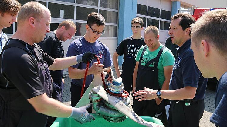 Seit Monatsbeginn opferten die jungen Männer an fünf Wochentagen und zwei Samstagen ihre Freizeit stellten sich dem Stress von Ausbildung und Prüfung freiwillig. Teilnehmer Markus Happ aus Thulba: "Ich bin gern dabei, weil mich die Maschinen interessieren." Außerdem sei die Atmosphäre unter den Kameraden aus dem gesamten Landkreis ganz toll, bestätigt Teilnehmer Jonny Heyne aus Untererthal. Unter der Woche ging es nach dem Arbeitstag noch von 19 bis 22 Uhr zum Pauken bei der Feuerwehr.