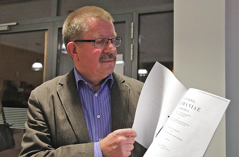 Städte- und Dorfchroniken, Hinweise aus verschiedenen Klöstern, Heimatblätter und Veröffentlichungen wie zum Beispiel des verstorbenen Kreisheimatpflegers Franz Warmuth lieferten Vogler die entscheidenden Hinweise, dass das Datum der angeblich aus dem Jahre 776 stammenden Urkunde nicht stimmen könne. "Der Professor irrt", wiederholte Vogler überzeugt.