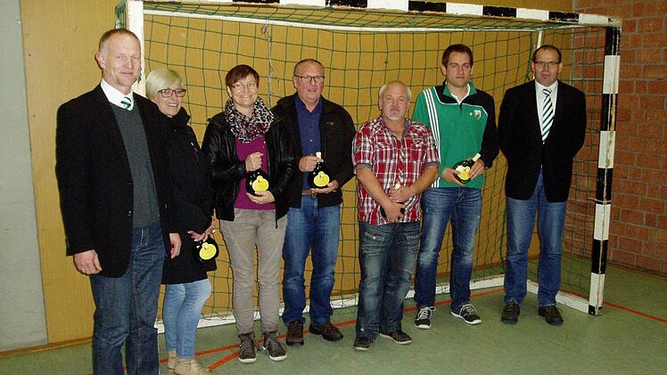 25 Jahre Der FC Untererthal hat geehrt: Thomas Emmert, Michael Hammer, Gabriele Heilmann, Peter Hüfner, Alois Kötzner, Dietmar Popp, Sven Prockl, Petra Richter und Ulrike Schneider