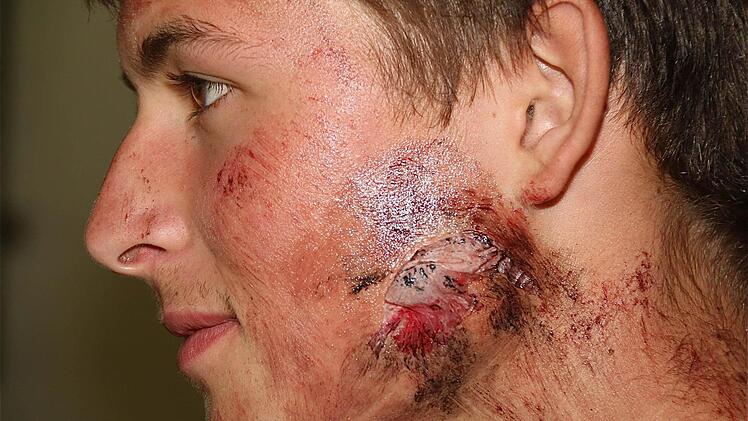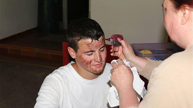 Täuschend echt geschminkt Die Verletzten wurden von der Rotkreuzbereitschaft Wartmannsroth dargestellt.
