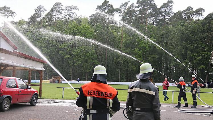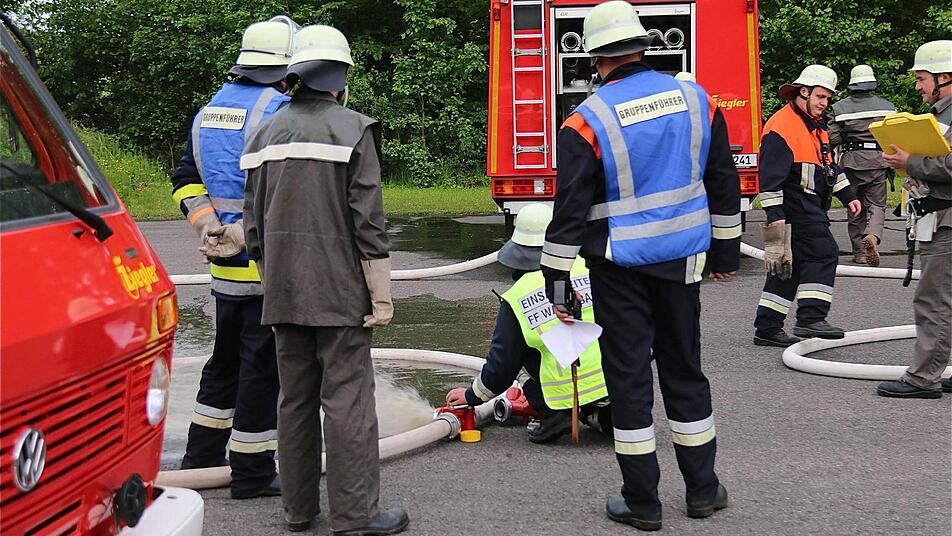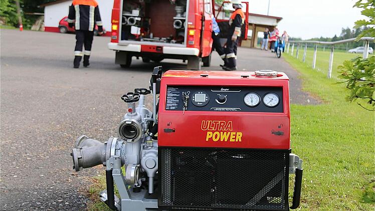 Die Wehren der Gemeinde Wartmannsroth stellten ihr Können unter Beweis. Die neue Tragkraftspritze der Floriansjünger aus Völkersleier bestand ihre Bewährungsprobe.