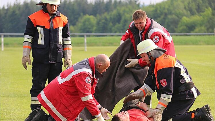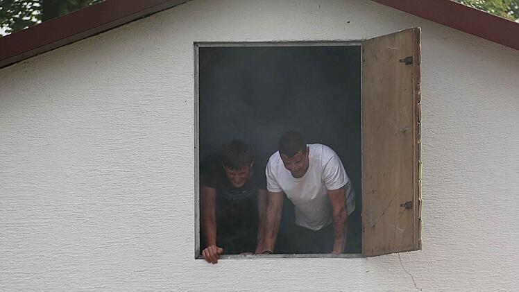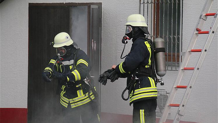 Menschenleben sind in Gefahr. Im Geräteschuppen des Sportheim brennt's, eine Verpuffung hat das Feuer ausgelöst. Zum Glück nur das Szenario einer Übung - aber durchaus realistisch. Die Feuerwehrleute bewiesen am Samstagabend, dass sie schnell und richtig Hilfe leisten können.