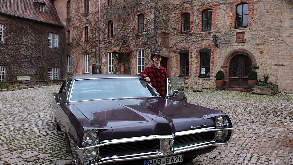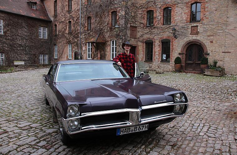 Mit einem dumpfen Donnergrollen kündigt sich "Bonnie" an: Noch bevor der 53 Jahre alte Pontiac-Bonneville von Benedikt Scheller zu sehen ist, wummert der V-8-Motor. Wenn der 23-Jährige durch Stadt und Land cruist, sind ihm die Blicke von Passanten sicher: Der aubergine-farbene Ami-Schlitten mit schwarzem Vinyl-Kunstleder-Dach, Baujahr 1967, erinnert an Filme aus der besten Hollywood-Zeit. Tatsächlich ist der Oldtimer auch aus den USA importiert. "Ich habe den Anfang 2018 im Internet gesehen", erzählt Benedikt Scheller, und: "Es war Liebe auf den ersten Blick, sowas kann man mit keiner Frau haben."