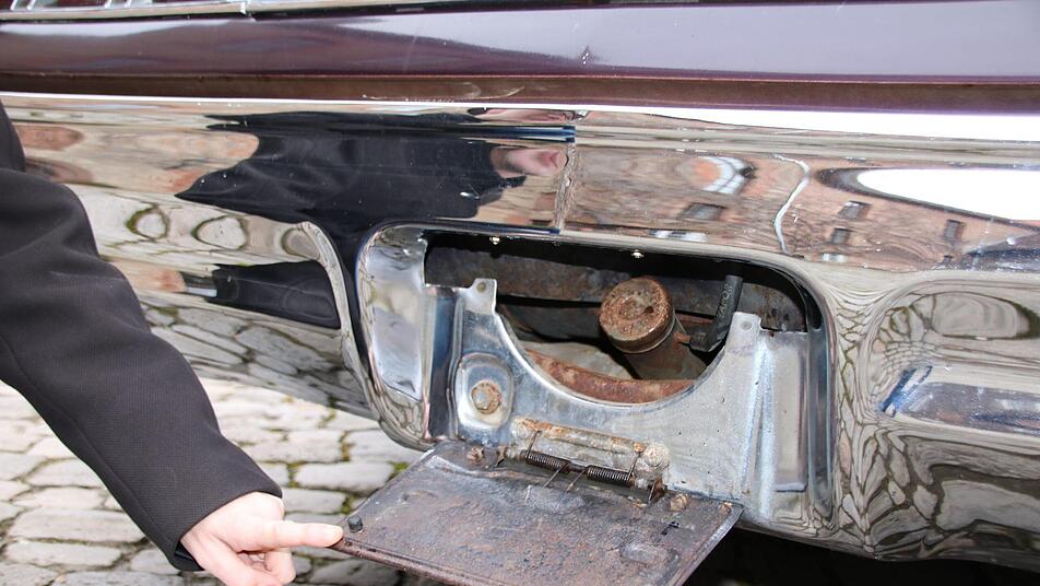 "Ich hatte aber keinen Fahrzeug-Brief oder Fahrzeug-Schein", berichte Scheller, dass dann der Kampf mit der Bürokratie los ging. Bereits der Transport hatte mehrere tausend Euro gekostet, jetzt musste er noch einmal mehrere tausend Euro investieren, um eine Zulassung für Deutschland zu bekommen. "Einiges habe ich selbst gemacht, aber vieles musste die Werkstatt übernehmen." Unter anderem mussten die alten Scheinwerfer gewechselt werden, weil sie nicht den aktuellen Vorgaben entsprechen, der 1,9 Tonnen schwere Wagen brauchte eine Abschlepp-Öse vorne, die mit einem Schild angebrachte Fahrgestell-Nummer musste dauerhaft eingeschlagen werden und auf dem Original-Tacho, der die Geschwindigkeit in Meilen pro Stunde angibt, müssen Aufkleber das Tempo in Kilometer pro Stunde anzeigen. Das stimme zwar nur, wenn er genau gerade vor dem Tacho mit seiner großen Scheibe sitze, aber: "Es muss halt sein."