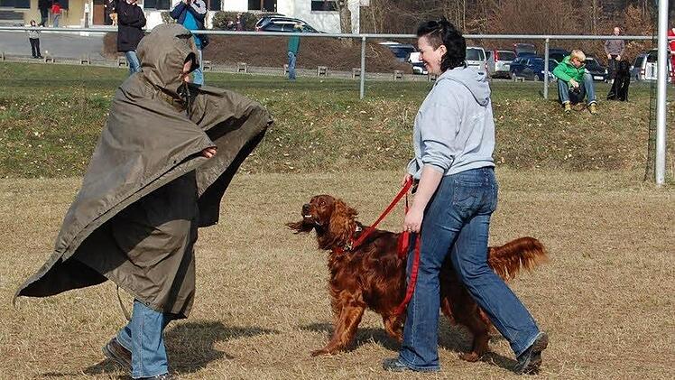 Vierbeiner aus ganz Bayern unterzogen sich in Hassenbach dem Eignungstest. Voraussetzungen müssen stimmen, bei Hund und Herrchen.