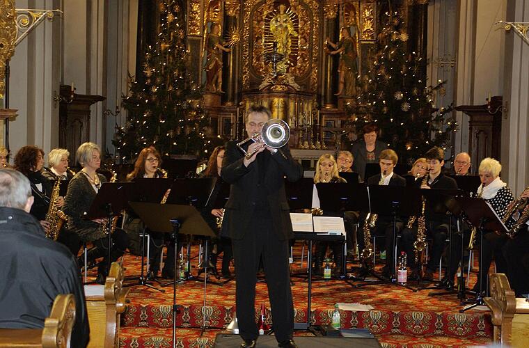 Weitere Stücke, die in der noch weihnachtlich geschmückten Klosterkirche zu Gehör kamen, waren das Adagio nach Tomaso Albioni, das eigentlich für Streicher und Orgel gedacht ist.