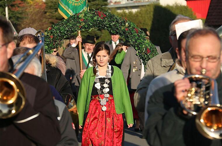 Ein prächtiger Festzug zieht durch den Ort. Die "Almrausch"-Schützen und die Schwärzelbacher Dorfkapelle holen Lena Müller ab. Im Umzug dabei sind auch ihr 2. Gau-Jugendritter Marco Leitschuh und Alicia Böhm, die 2. Gau-Schützenliesel, die ebenfalls in Schwärzelbach und Neuwirtshaus beheimatet sind. "Ich habe halt bloß einen guten Schuss getan", gibt sich Lena charmant bescheiden. Schon im Vorjahr hatte sie den Titel der Gaujugend-Schützenkönigin geholt. "Ich freue mich, dass ich meinen Titel verteidigen konnte", strahlt die 15-Jährige.