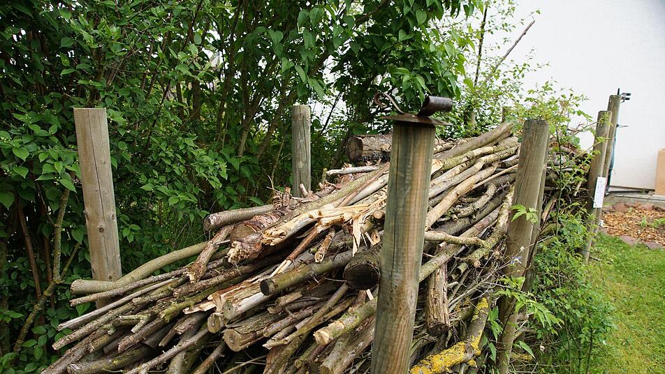 Die Insekten seien schnell gekommen. Um sie zu unterstützen, finden sich im Garten nicht nur verschiedene Pflanzen und Kräuter, sondern auch Unterschlupfmöglichkeiten, zum Beispiel ein Stück Hecke aus aufgeschichteten Ästen. Eine Vertiefung, die mit Reisig bedeckt ist, dient als "Käferkeller", erklärt Jutta Weimar.