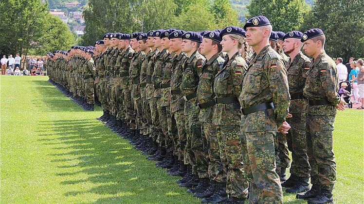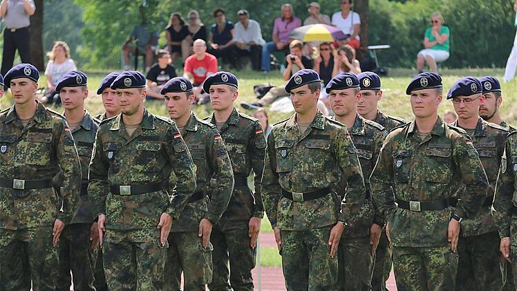 "Es ist ein Eid auf den demokratischen Rechtsstaat und nicht auf eine Einzelperson", betonte Warmuth mit Blick auf den 20. Juli 1944 (Stauffenbergs Hitlerattentat). Der Standort der Bundeswehr in Hammelburg sei eine tragende Säule für die Gesellschaft und ein wirtschaftlicher Faktor für die Region. "Soldaten, Sie schwören jetzt, das Recht und die Freiheit des deutschen Volkes zu verteidigen", wies Hagemann auf die besondere Bedeutung dieser öffentlichen Vereidigung hin.