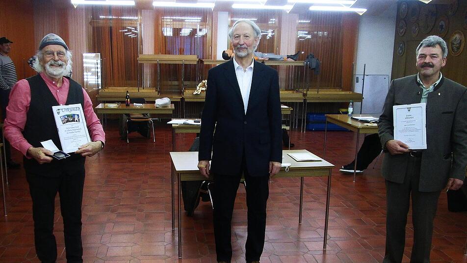 Beispiele sind der "Weg der Besinnung" am Heiligenhof, der Weg "Wein und Stein" im Ort, der Erinnerungsstein zur 1300-Jahr-Feier an der Alten Saalebrücke oder "Die Cloud" auf dem Ramsthaler Kunst-Weg. Vom Landkreis bereits mit dem Kulturehrenbrief ausgezeichnet, fügte der Bürgermeister jetzt die Bürgermedaille hinzu. Mit Dank für die Anerkennung, räumte der Geehrte ein "in Euerdorf seit 50 Jahren gefühlsmäßig angekommen zu sein". "Es gibt auch heute noch Menschen, die sich für die Gemeinschaft und Kunst einbringen. Ich bin froh, dass ich dazugehöre", unterstrich Droll, der die Auszeichnung und ein Präsent entgegennahm.